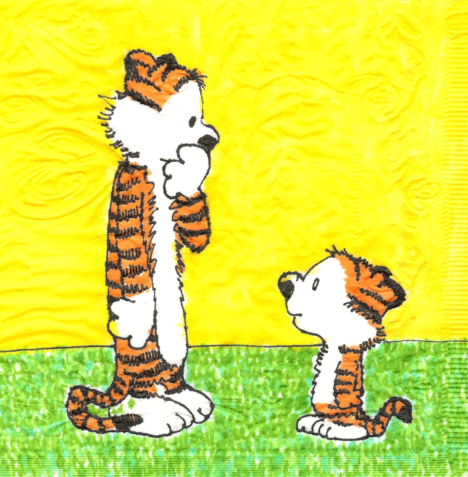 | We enjoyed Watterson's ability to humor us without words. We are avid Calvin and Hobbes readers at bedtime, so this may be more funny knowing the peronalities of these two best friends. |